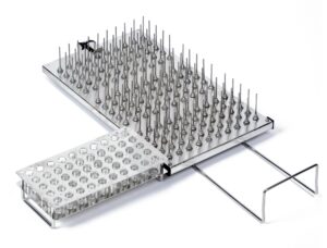 フラン瓶専用カセットホルダーをご使用する事で、DO5分析後のフラン瓶24本/1カセットを一度に排水し、そのまま洗浄機へセット可能です。