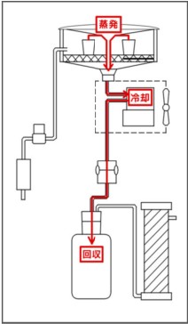 蒸留回収することにより、揮散したn-ヘキサンを環境中に放出することは無く、環境への負荷を軽減することができます。また、ドラフトでの揮散作業等が不要なため、分析室の効率的なレイアウトが可能となります。