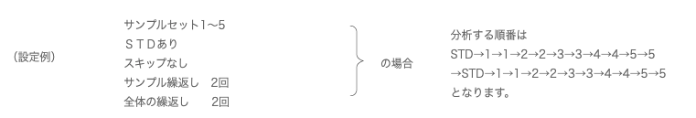 本シリーズでは、ガスクロマトグラフのREADY/START信号対応、STD挿入、繰り返し分析、ノズルスキップなどの機能を有しており、様々な測定方法を設定するができます。